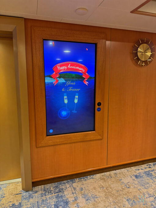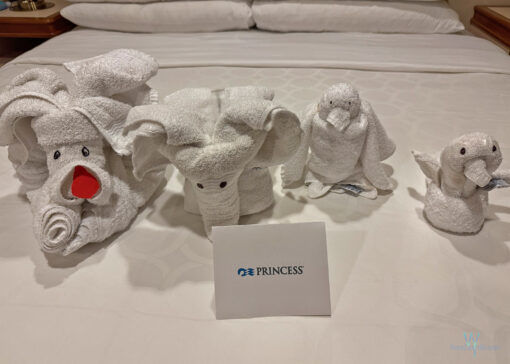 From the moment we stepped onboard, we felt incredibly welcomed. We mentioned to our travel agent (and friend) that we were celebrating our anniversary, and Princess Cruises really made it special. Yay! Thanks! Every time we passed certain screens onboard, a little “Happy Anniversary” message would pop up with our names. And our stateroom attendant left us a sweet note along with those famous towel animals that we always love asking for. It’s those small details that make the trip feel more personal and memorable.